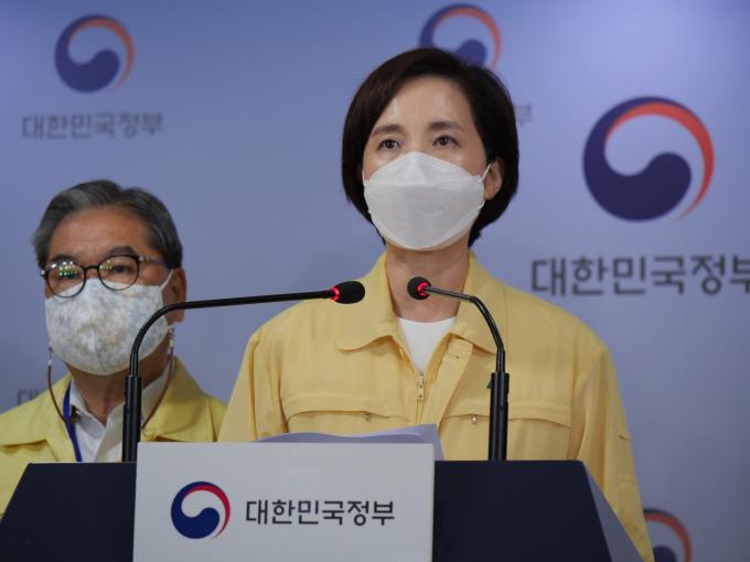 ▲ 유은혜 사회부총리 겸 교육부 장관이 지난 25일 정부서울청사에서 브리핑을 열고 수도권지역 학교 전면 원격수업 전환을 발표하고 있다. [교육부 제공]