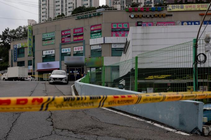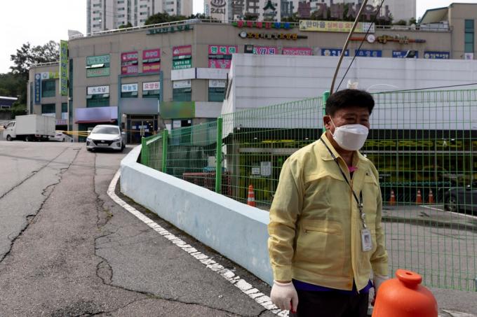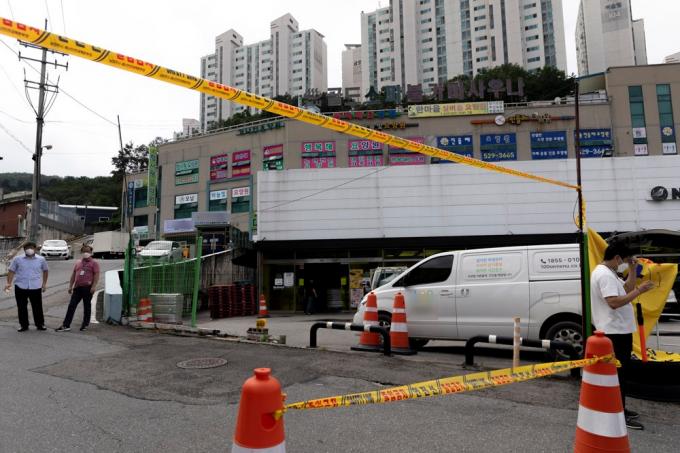 코로나19 확산세가 지속되고 있는 28일 오전 경기 남양주 오남읍의 요양원에서 코로나19 집단감염이 발생한 가운데 방역당국이 건물 전체와 진입로를 통제하고 있다.