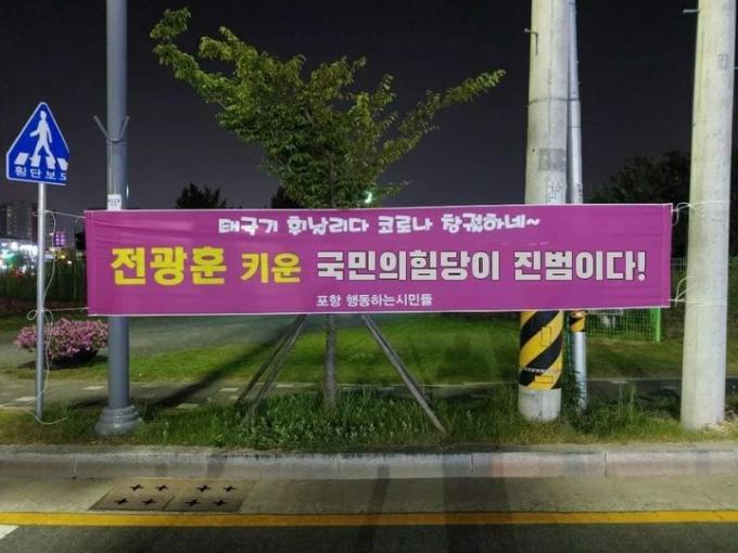 배너 사진이 유포되자 누리꾼들은 "포항시민들 깨시민이다" "국민의힘당은 코로나당" "국민의짐당" "국민의암당" 등 조롱 섞인 후평들이 이어지고 있다.