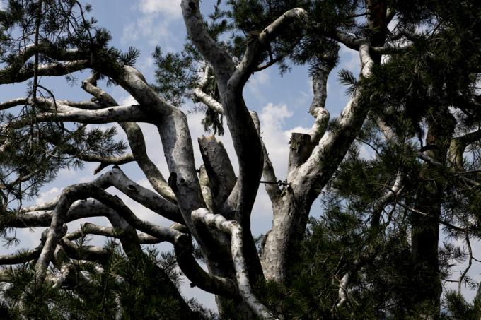 4일 오후 경기 이천 백사면에 천연기념물 제253호인 백송이 한반도를 강타한 태풍 '마이삭(MAYSAK)'의 영향으로 중심 줄기 2개가 부러져 있다.