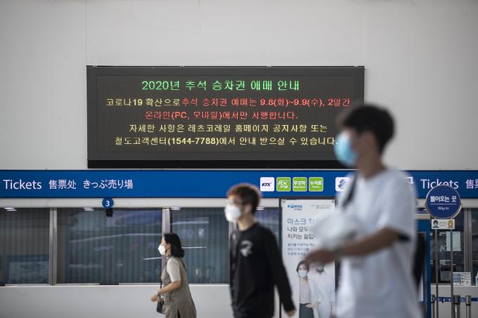 정부, 추석 고향 방문 자제 권고…창가 좌석만 판매 추석 철도 승차권 예매가 진행된 첫날 공급좌석 50만 석 가운데 26만3000석 가량이 팔린 것으로 파악됐다.