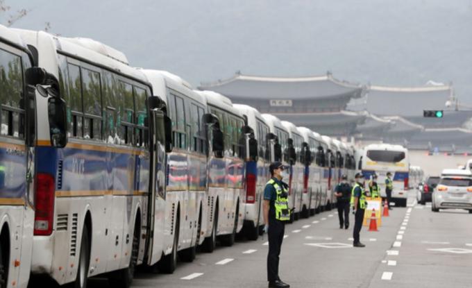 광화문 광장 인근을 통과하는 시내버스 34개 노선도 이날 임시우회운행한다.