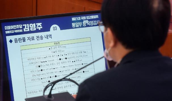 김 의원은 "민주평통이 제출한 국감 자료 중에 업무와 전혀 관련이 없는 파일들이 무더기로 전송됐다"며 "제목을 좀 말하기가 어려운데 몰카, 쉽게 말하면 불법 음란물"이라고 지적했다.