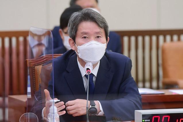 ▲이인영 통일부 장관이 8일 국회에서 열린 외교통일위원회의 통일부 등에 대한 국정감사에서 의원들의 질의에 답하고 있다. [공동취재사진]