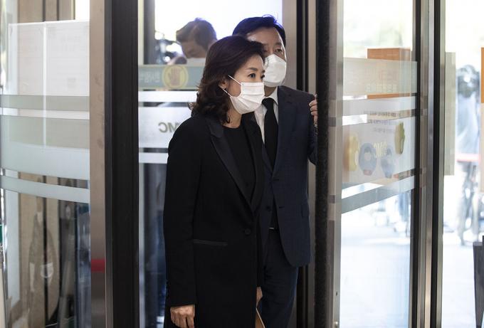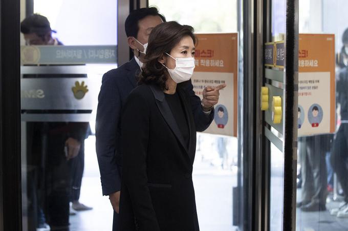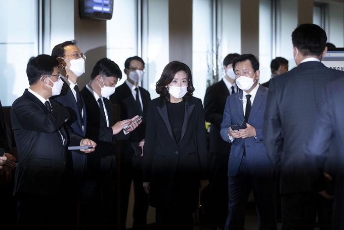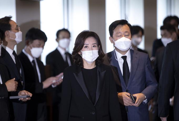 나경원 전 자유한국당 의원이 26일 오후 서울 강남구 삼성서울병원 장례식장에 마련된 故 이건희 삼성그룹 회장의 빈소 조문을 하고 있다.