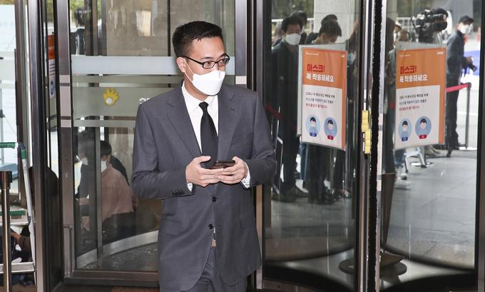 김동선 전 한화건설 팀장이 26일 오후 서울 강남구 삼성서울병원 장례식장에 마련된 고 이건희 삼성전자 회장의 빈소에 조문하고 있다.