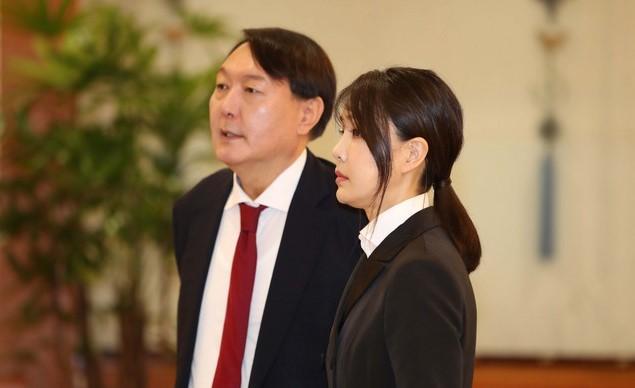 ▲ 지난해 7월 25일 청와대 임명장 수여식에 참석한 윤석열 검찰총장과 부인 김건희 씨. [뉴시스]