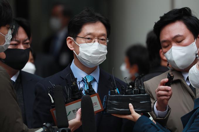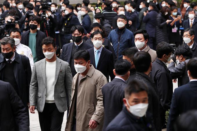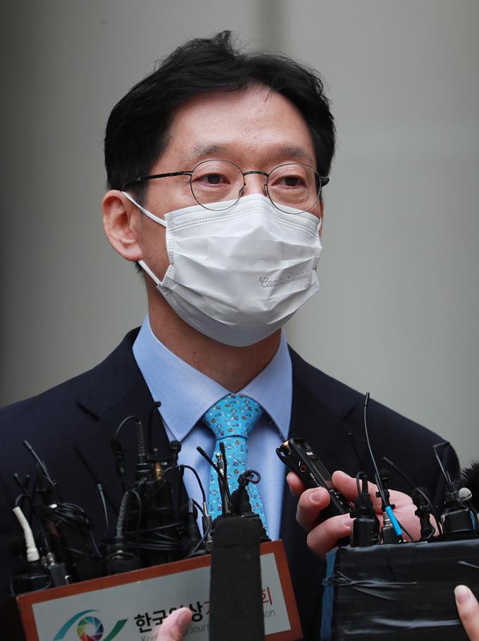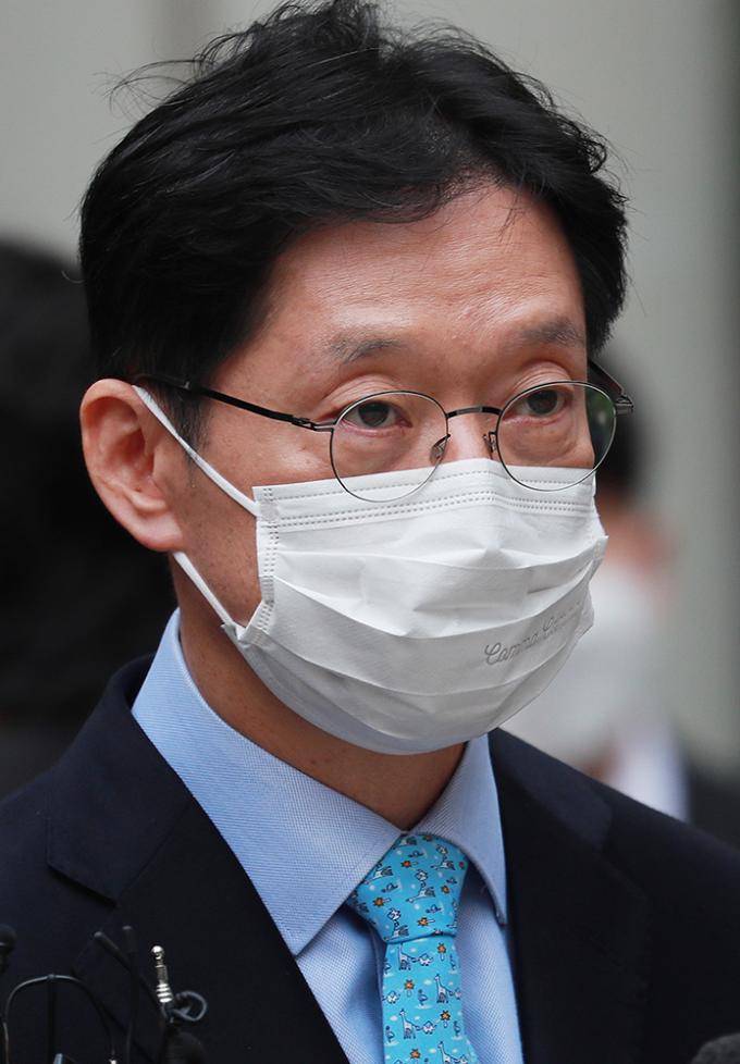 댓글을 이용한 불법 여론조작 혐의로 1심에서 실형을 선고받은 김경수 경남도지사가 6일 오후 서울 서초구 서울고등법원에서 열린 항소심 선고공판을 마친 뒤 법원 청사를 나서고 있다. 이날 법원은 1심과 같이 징역 2년을 선고했다.