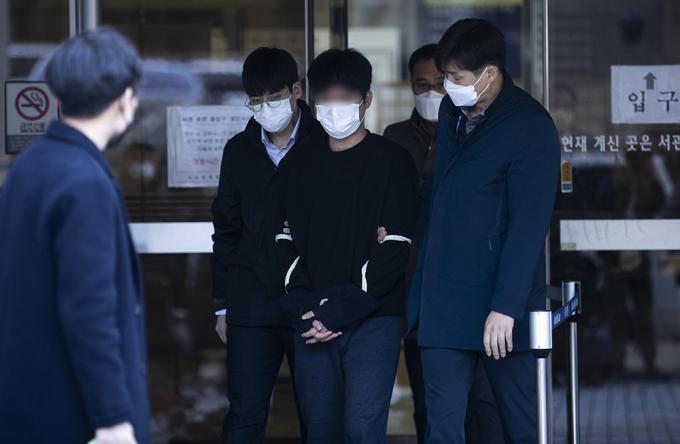 범죄수익은닉규제법 위반 등 혐의를 받는 세계 최대 아동 성착취물 웹사이트 '웰컴투비디오' 운영자 손정우가 9일 오전 서울 서초구 서울지방법원에서 열린 영장실질심사를 마친 뒤 호송차에 오르고 있다.