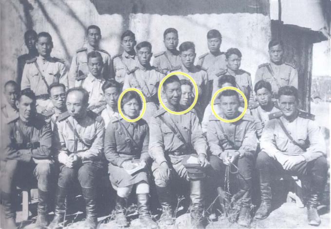실제로 88여단 지휘부 촬영 사진을 보면 △앞줄 좌로부터 바탈린(N.S. Batalin, 巴达林, 소련), 정치 부여단장 이조린(李兆麟, 중국), 왕일지(王一知, 주보중의 부인), 여단장 주보중(周保中, 중국), 김일성(金日成, 제1대대장, 조선), 부여단장 시린스키(T. N. Shirinsky, 什林斯基, 소련) △제2열 좌로부터 장광적(张光迪, 중국), 풍중운(冯仲云, 중국), 왕효명(王效明, 중국), 왕명귀(王明贵, 중국), 팽시로(彭施鲁, 중국) △제3열 좌로부터 양청해(杨清海, 중국), 서철(徐哲, 조선), 강신태(姜信泰=강건, 조선), 김광협(金光侠, 조선), 수장청(隋长青, 중국) △제4열 좌로부터 안길(安吉, 조선), 박덕산(朴德山=김일, 조선), 최용진(崔勇進, 조선), 도우봉(陶雨峰, 중국), 김경석(金京石, 조선) 등으로 3국 출신들이 고루 섞여 있다.