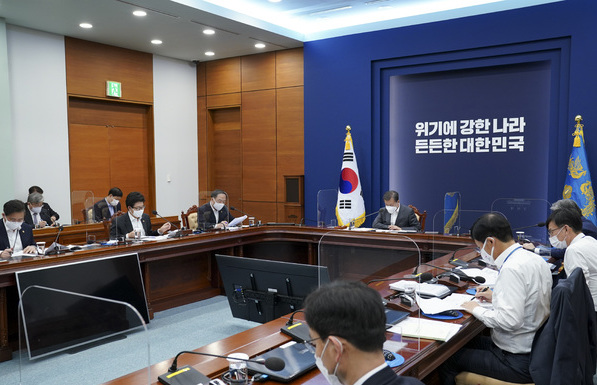 이날 회의에는 홍남기 경제부총리 겸 기획재정부 장관, 성윤모 산업통상자원부 장관, 조명래 환경부 장관, 김현미 국토교통부 장관, 박영선 중소벤처기업부 장관, 구윤철 국무조정실장 등이 참석했다.