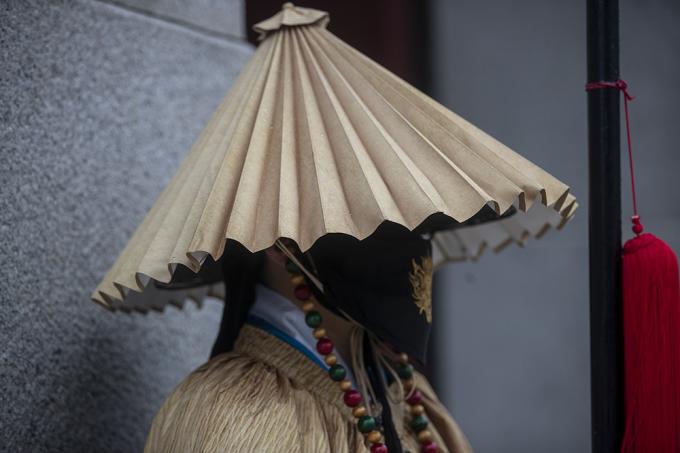 한국문화재재단이 조선시대 군사들이 착용한 우비용 의상인 유삼(油衫)과 쓰개(지삿갓, 갈모)를 복원해 광화문 수문장들에게 적용하여 공개한다.