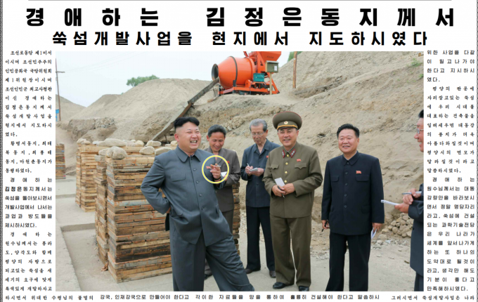 김정은이 공개된 장소에서 담배를 피우는 모습은 2014년 6월초 쑥섬 개발사업을 현지지도 하는 장면이 〈노동신문〉 1면에 실리면서 처음으로 북한 주민에게 널리 알려졌다. 당시 노동당 제1비서이자 국방위원회 제1위원장이었던 김정은은 황병서·최태복·최룡해 등 아버지뻘 되는 간부들이 수첩과 펜을 들고 적는 가운데 혼자서 호방하게 웃으며 담배를 피우는 모습을 보였다.