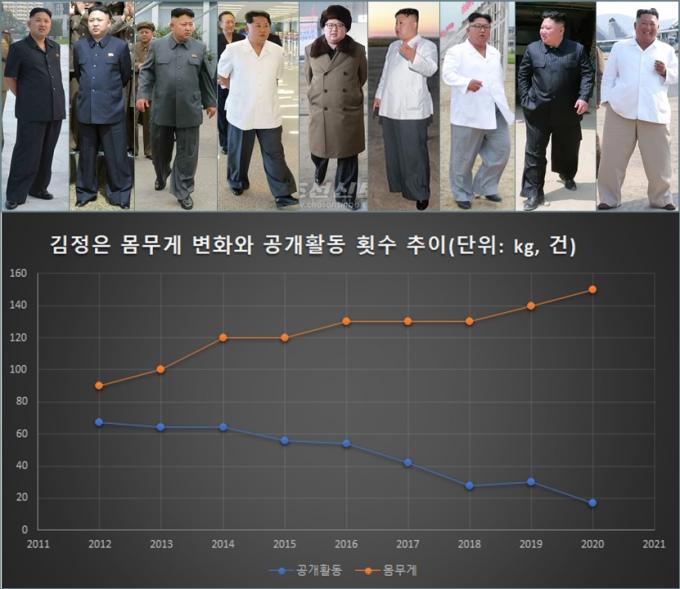 김정은의 과체중과 초고도비만은 공개활동 축소 등 그의 활동 반경에도 영향을 미친 것으로 분석된다. 김정은 위원장은 올해 공개활동이 크게 준 것으로 나타났는데, 코로나19 영향 탓이 크지만 공개활동 추세와 그의 체중 변화가 서로 반비례함을 알 수 있다.