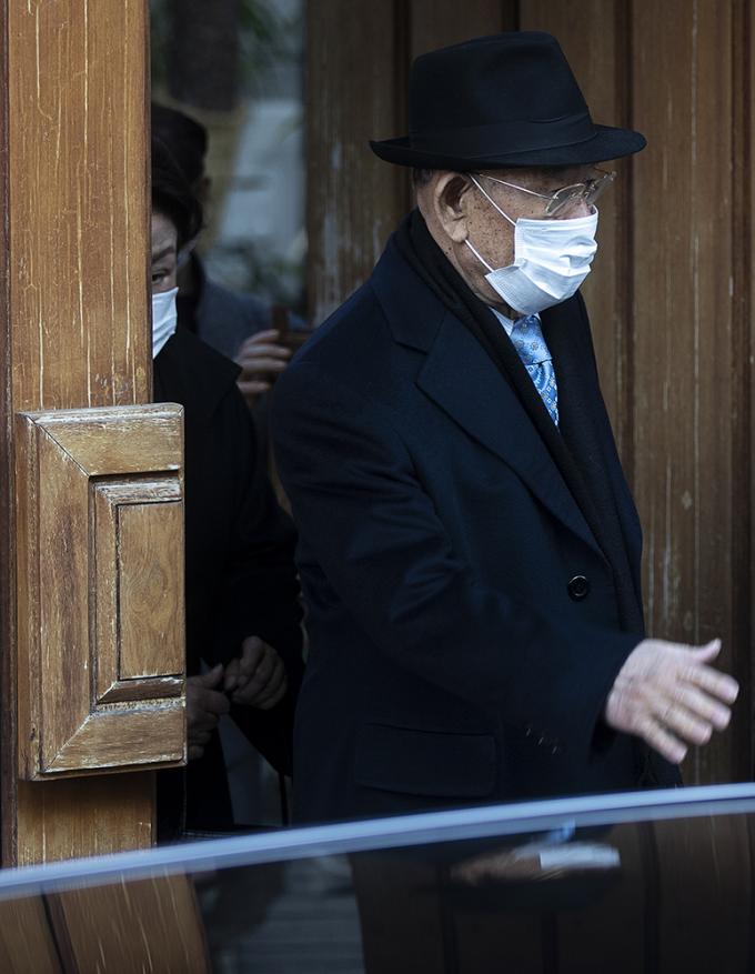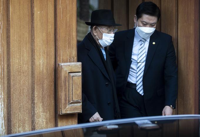 전직 대통령 전두환 씨가 30일 오전 광주지방법원에서 열리는 1심 선고 공판에 출석하기 위해 서울 서대문구 연희동 자택을 나서고 있다. 전 씨는 5.18 당시 헬기사격을 증언한 고(故) 조비오 신부에 대한 사자명예훼손 혐의로 기소됐다.