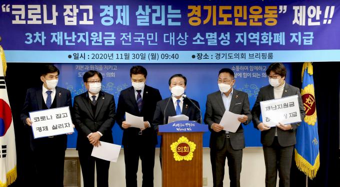경기도의회 의원들이 3차 재난지원금과 관련해 소멸성 지역화폐로 전 국민 지급을 요구하고 나섰다.
