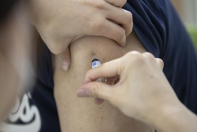 ▲ 서울 동대문구 한국건강관리협회 건강증진의원 서울동부지부를 찾은 시민이 독감 예방 접종을 하고 있다. [정병혁 기자]