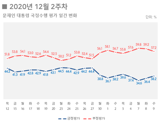 이후 8일 36.4%에서 9일 38.2%로 조금씩 상승 추세를 보였다.