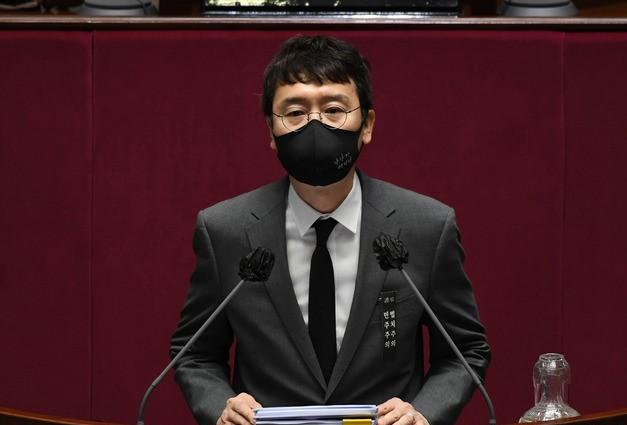 ▲ 국민의힘 김웅 의원이 11일 국회에서 열린 본회의에서 국정원법 개정안에 대한 무제한 토론(필리버스터)를 하고 있다. [공동취재사진]