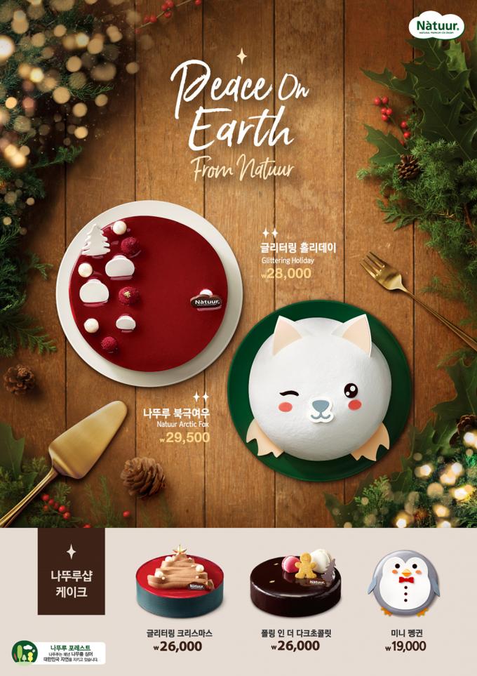 한편, 나뚜루는 매장에서도 크리스마스 시즌 케이크 3종을 선보였다. 크리스마스 트리를 형상화한 '글리터링 크리스마스'와 다크 초콜릿으로 코팅한 '폴링 인 더 다크 초콜릿', 귀여운 캐릭터 모양의 '미니 펭귄'이다.