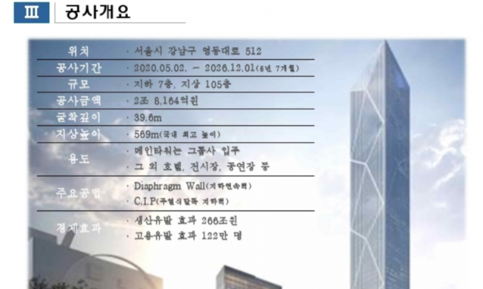 앞서 GBC 기존안은 2026년 완공을 목표로 지상 105층 타워 1개 동과 숙박·업무시설 1개 동, 전시·컨벤션·공연장 등 5개 시설을 옛 한국전력 부지(7만4148㎡)에 조성하는 계획이었다.