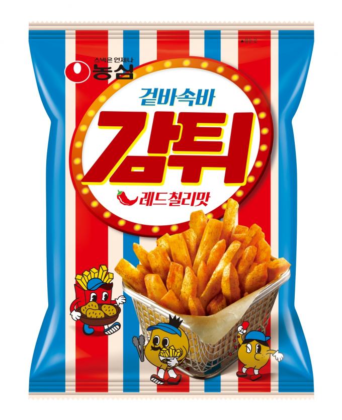농심이 감자스틱 스낵 신제품 '감튀 레드칠리맛'을 출시했다.