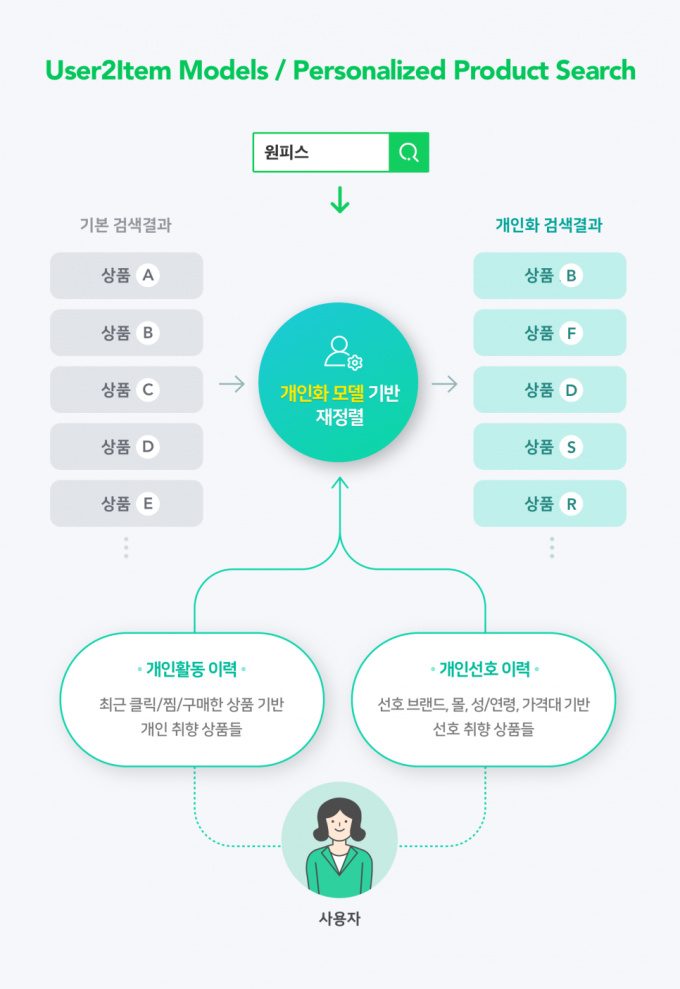 예를 들어 네이버 쇼핑에서 '원피스'를 검색하면 2000만 건이 넘는 원피스가 나온다. 내가 원하는 원피스를 찾기 위해서는 여러 브랜드와 쇼핑몰을 일일이 찾아보고 비교해야 하지만, 이런 번거로움 없이 과거 쇼핑 이력과 연령대 정보를 분석해 좋아할 만한 원피스부터 보여주게 된다.