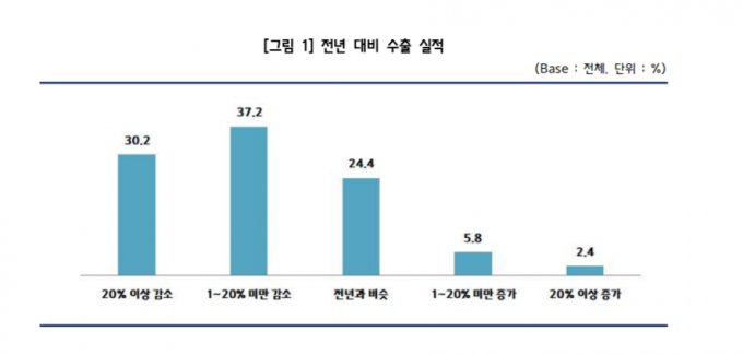 수출 실적이 증가했다는 응답은 8.2%에 그쳤고 작년과 비슷하다는 답변은 24.4%였다.