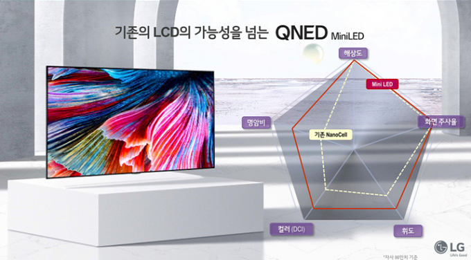 현존 LCD TV에선 '최고 수준' LG전자가 미니 LED와 독자적 고색재현(영상을 실제의 색과 유사하게 재현하는 것) 기술을 적용한 프리미엄 LCD TV 라인업을 새롭게 선보인다.