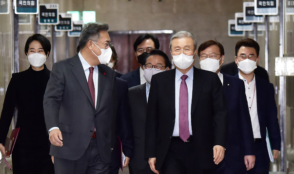 정진석 "정권심판 대의 동참하면 누구나 함께" 국민의힘 김종인 비상대책위원장은 30일 내년 4월 서울·부산시장 보궐선거와 관련해 "공천관리위원회에서 국민의힘이 최적의 후보를 발굴하는 데 노력해주면 두 도시에서의 승리가 확실하다고 믿는다"고 말했다.