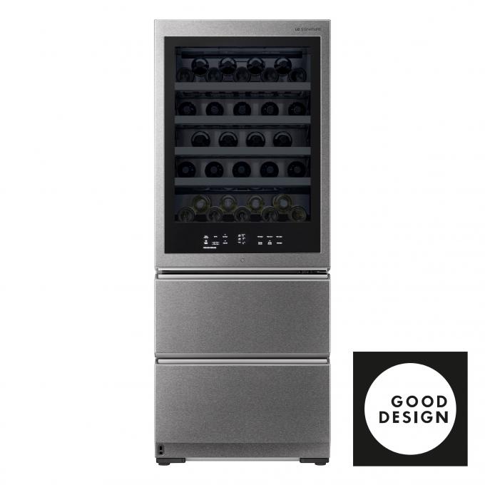 LG 시그니처 와인셀러는 외관과 내부에 스테인리스 소재가 사용됐고, 보는 각도에 따라 다른 빛을 내는 '샤이니 유니버스 패턴' 디자인이 적용됐다.