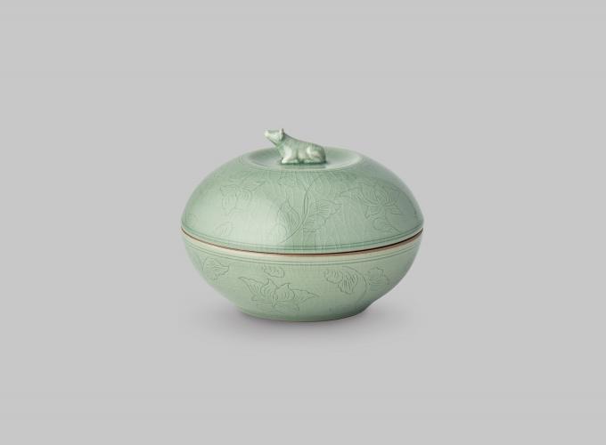 ▲ 광주요 청자 음각 목단문 십이지신 소 합 [광주요 제공]