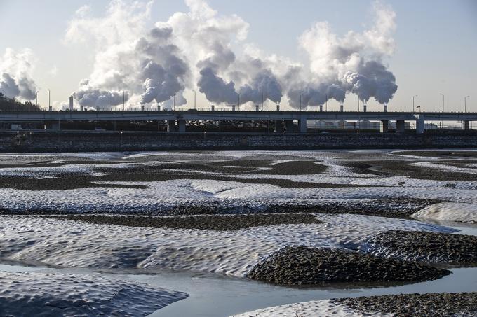 전국적으로 영하 20도를 넘는 북극발 한파가 절정에 달한 8일 오전 인천 정서진 인근 갯벌이 얼어있다.