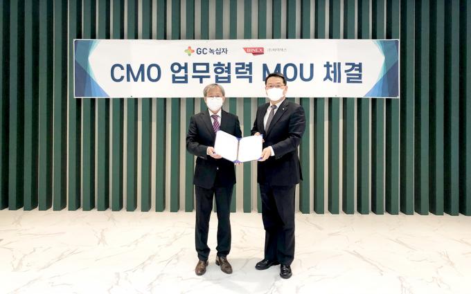 GC녹십자는 이날 충북 청주시 오창공장에서 바이넥스와 바이오의약품 위탁생산을 위한 업무협약을 맺었다. 양사는 CMO 사업의 포괄적인 협업을 이어나갈 계획이다.