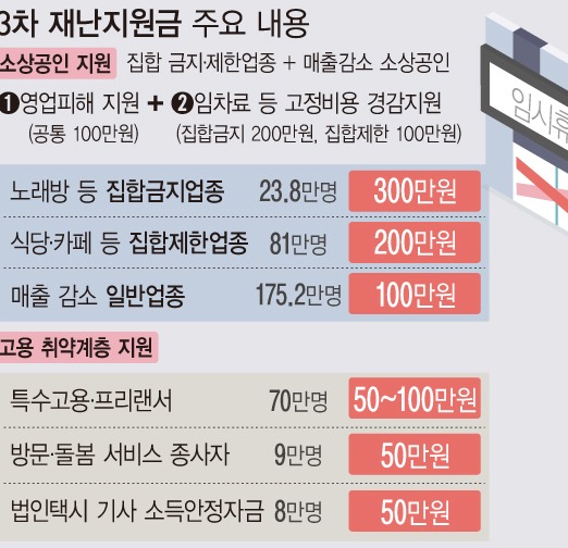 11일부터 지원금을 받는 이들은 행정정보로 파악된 집합금지·영업제한 업종, 지난 새희망자금 수령자 등이다. 당일 안내 문자를 받고 즉시 신청한다면 이날 오후 또는 다음날 오전까지 지원금을 받을 수 있다.
