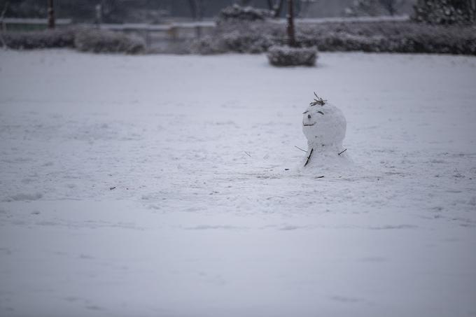 폭설이 내리고 있는 12일 오후 경기 부천시 상동에 눈사람이 만들어져 있다.