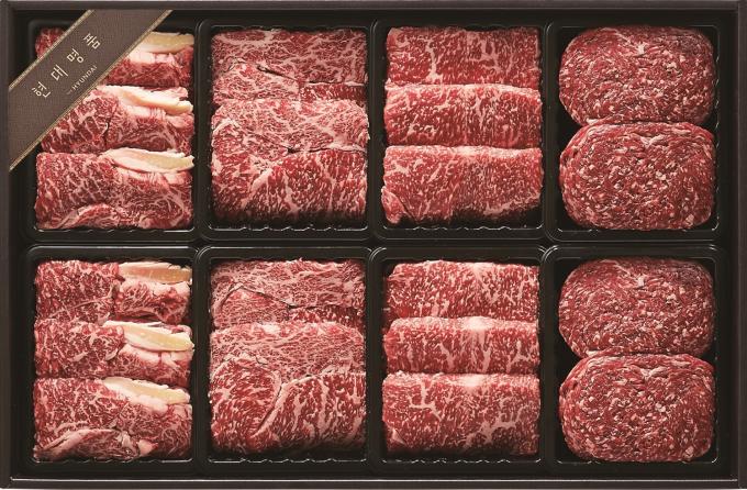현대백화점의 대표적인 완판 명절 선물세트인 '화식한우' 중에서도 1++등급과 마블링 9등급을 모두 충족하는 등심과 채끝 부위로 구성했다. '화식한우'는 볏짚·보리·쌀겨 등 자체 배합한 곡물을 '끓여 먹이는 방식'을 뜻하는 전통 사육 방식을 고수해 기르는 프리미엄 한우로, 일반 한우에 비해 필수지방산 함유량이 높아 육색이 짙고 뛰어난 식감을 내는 것이 특징이다.