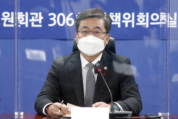▲ 서욱 국방부 장관이 14일 국회 의원회관에서 열린 군사시설 보호구역 해제 및 완화 당정협의에서 발언하고 있다. [뉴시스]