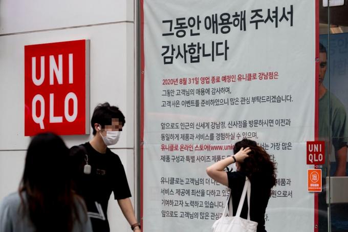 유니클로 매장은 지난해 8월 말 190개에서 현재 156개로 34곳 줄었다. 국내 최대 매장인 명동중앙점도 오는 31일 영업을 종료한다.