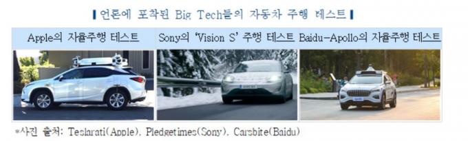 빅테크가 이미 자본 조달력과 브랜드 인지도, 개발·생산 역량을 갖추고 있는 만큼 짧은 시간 안에 완성차 시장에 진출해 기존 산업 구조에 파괴적인 변화를 일으킬 수 있을 것으로 연구원은 내다봤다.