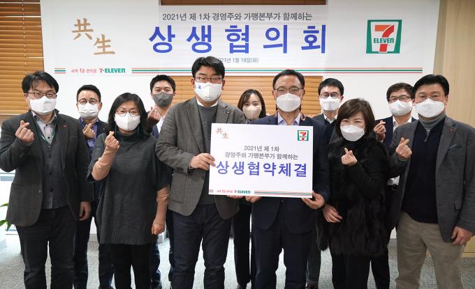 편의점 세븐일레븐은 19일 '2021년 가맹점 상생협약'을 체결하고 지속성장 가능한 점포 운영 환경을 조성하기 위한 투자에 본격적으로 나선다고 20일 밝혔다.