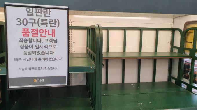 롯데마트는 소비자 1명당 3판, 홈플러스는 1판만 살 수 있다. 이마트는 30개짜리 상품에 대해서만 1인 1판 제한을 뒀다.
