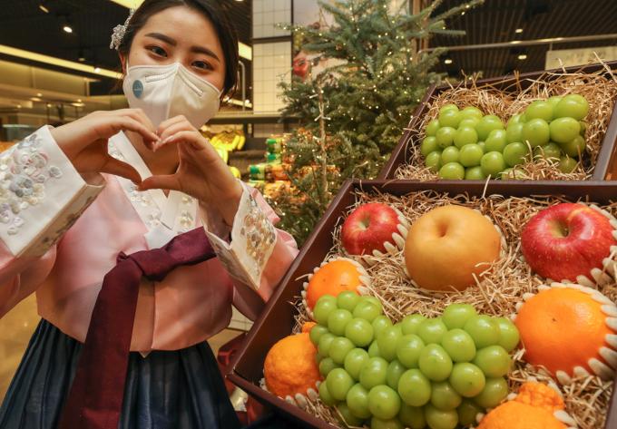 현대백화점은 다음달 11일까지 압구정본점 등 전국 15개 전 점포에서 진행되는 설 선물세트 본판매 기간 동안 '하트 모양 샤인머스캣'이 들어간 선물세트 2종을 판매한다고 26일 밝혔다.