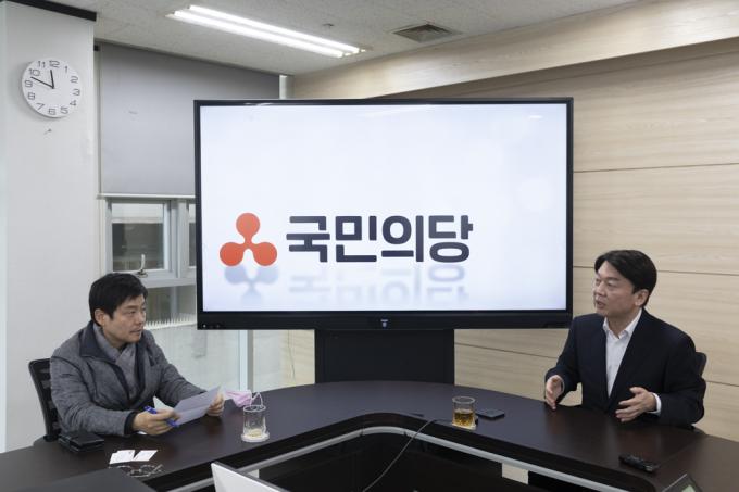 인터뷰는 26일 오전 11시30분 여의도 국민의당 당사에서 약 40분간 '촉박하게' 진행됐다. 12시가 지나자 배석한 장지훈 공보팀장의 눈빛이 불안하게 흔들렸다. 다음 일정이 늦어져 불안했던 모양이다.