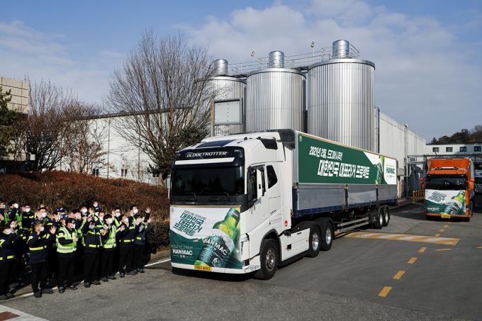 오비맥주는 지난달 28일 오전 광주공장에서 한맥 첫 출고 기념식을 개최했다. 한맥 첫 출고 물량은 2월 초부터 순차적으로 전국 편의점, 대형마트 등 다양한 유통 채널과 음식점, 유흥업소 등에서 판매될 예정이다.