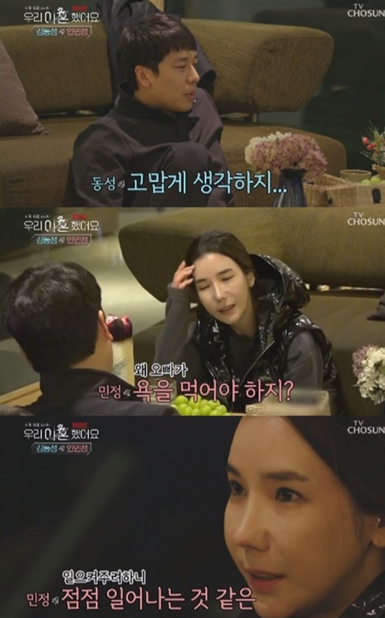 김동성은 여자친구 인민정과 1일 오후 방송된 TV 조선 예능 프로그램 '우리 이혼했어요'에 등장했다.