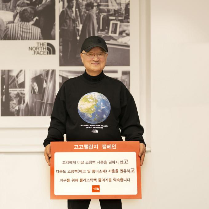 영원아웃도어 성기학 회장이 생활 속 플라스틱 사용을 줄여 환경보호를 실천하는 친환경 캠페인 '고(Go)고(Go) 챌린지'에 동참한다.