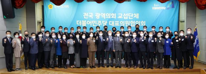 이 자리에는 경기도의회를 비롯해 서울시의회, 인천시의회, 강원도의회, 충남도의회, 부산시의회, 대구시의회, 울산시의회, 경북도의회, 전북도의회, 전남도의회, 제주도의회 등 17개 시·도의회 가운데 12개 의회 더불어민주당 대표가 참석했다.