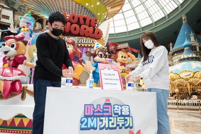 롯데월드는 코로나19 상황에도 손님이 안심하고 시설을 이용할 수 있도록 거리두기 단계와 관계없이 최상의 방역, 소독 활동을 준수하고 있다.