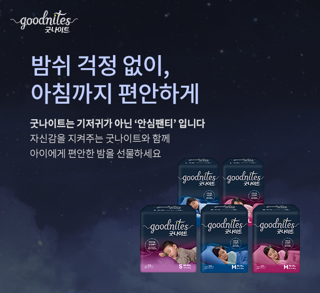 굿나이트는 기저귀를 뗐지만 '밤쉬' 현상을 다시 겪는 아이들이 보다 편안한 밤을 보낼 수 있도록 개발된 제품으로, 흡수력과 디자인을 한층 업그레이드하여 출시했다.